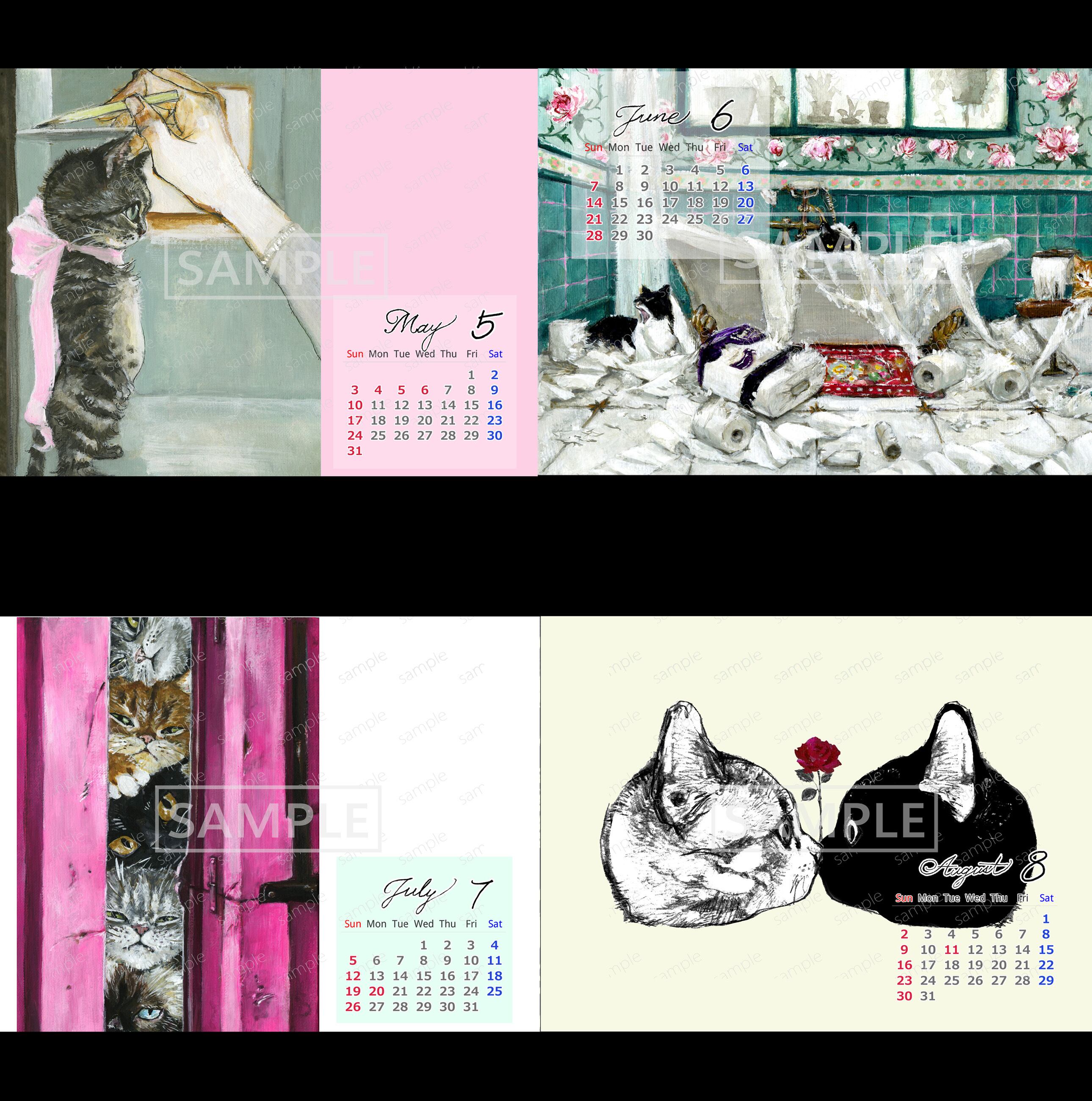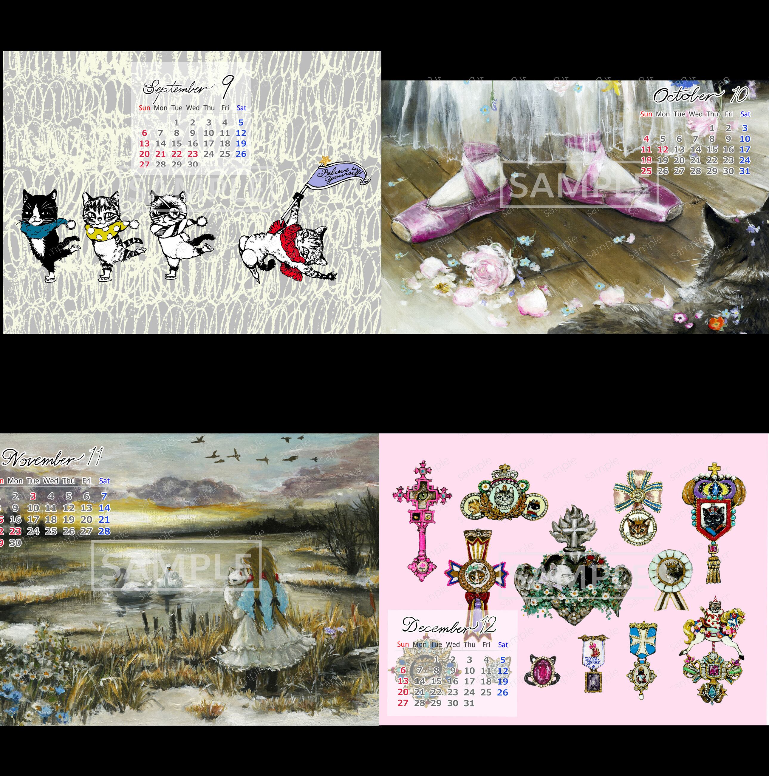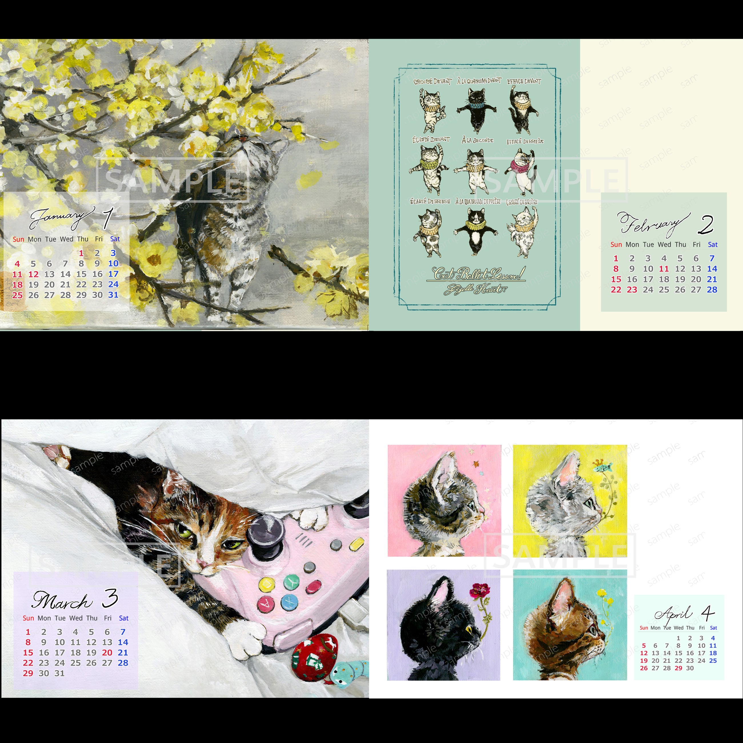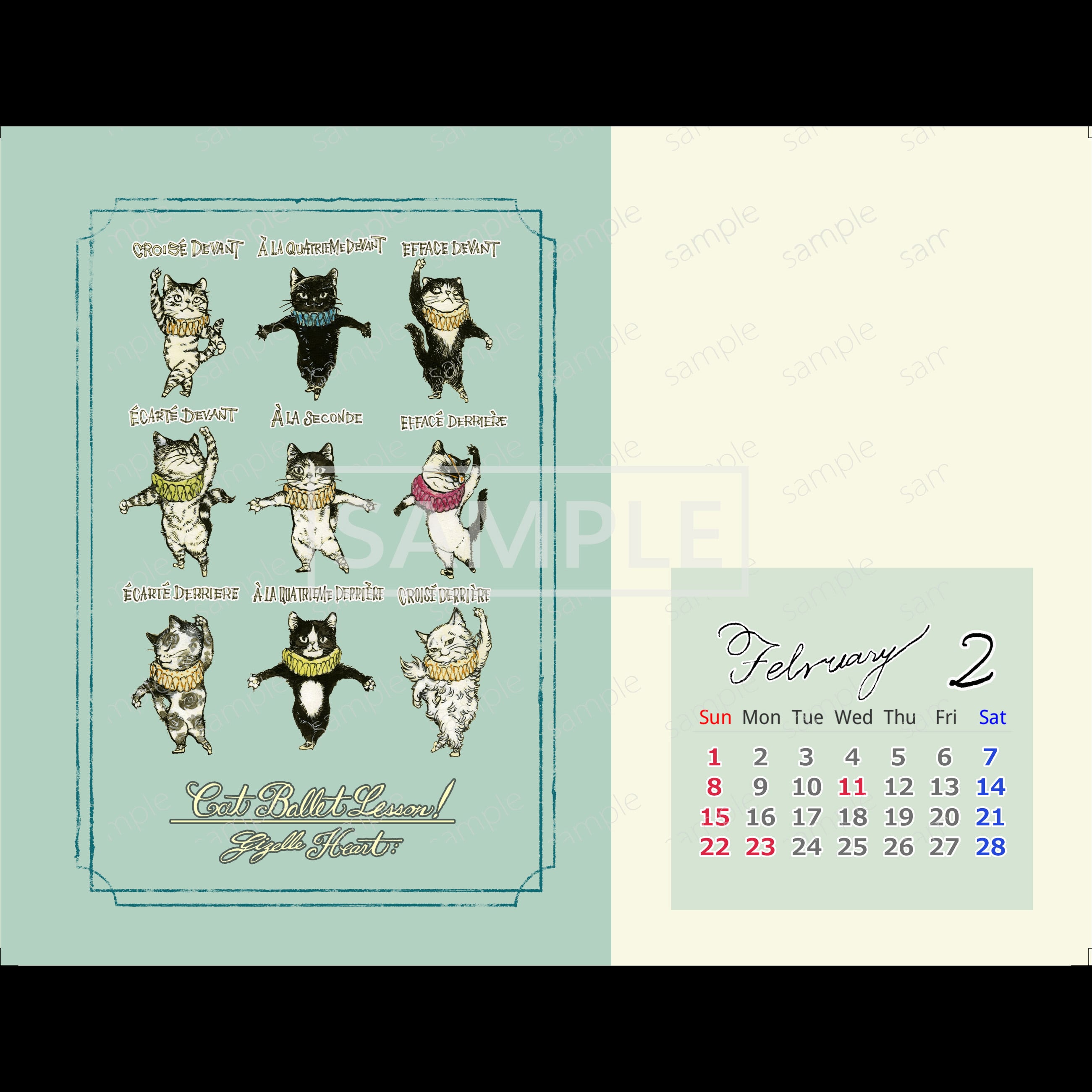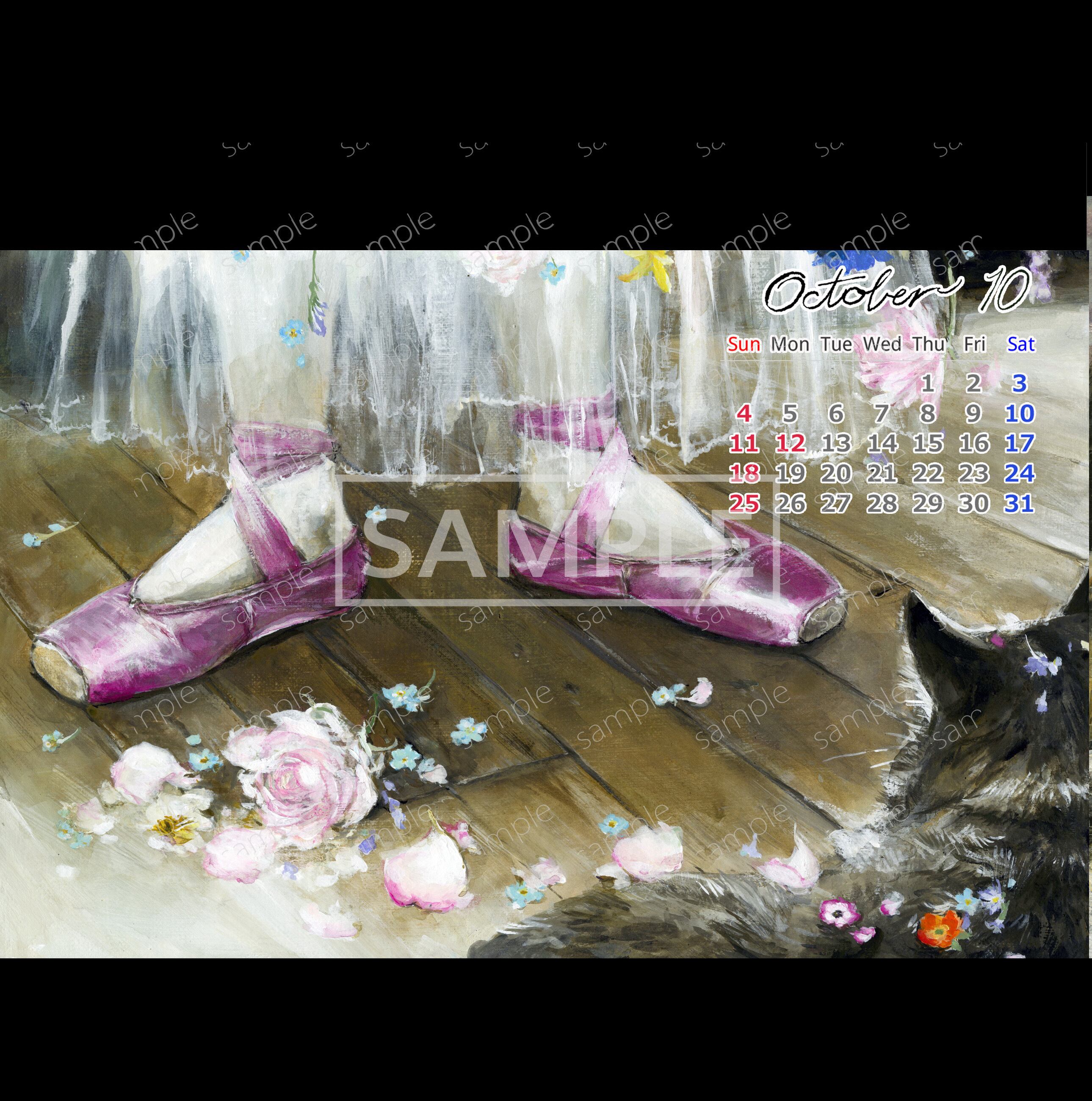 ねことバレエをテーマに、表紙+12ヶ月分の絵を収録しました。