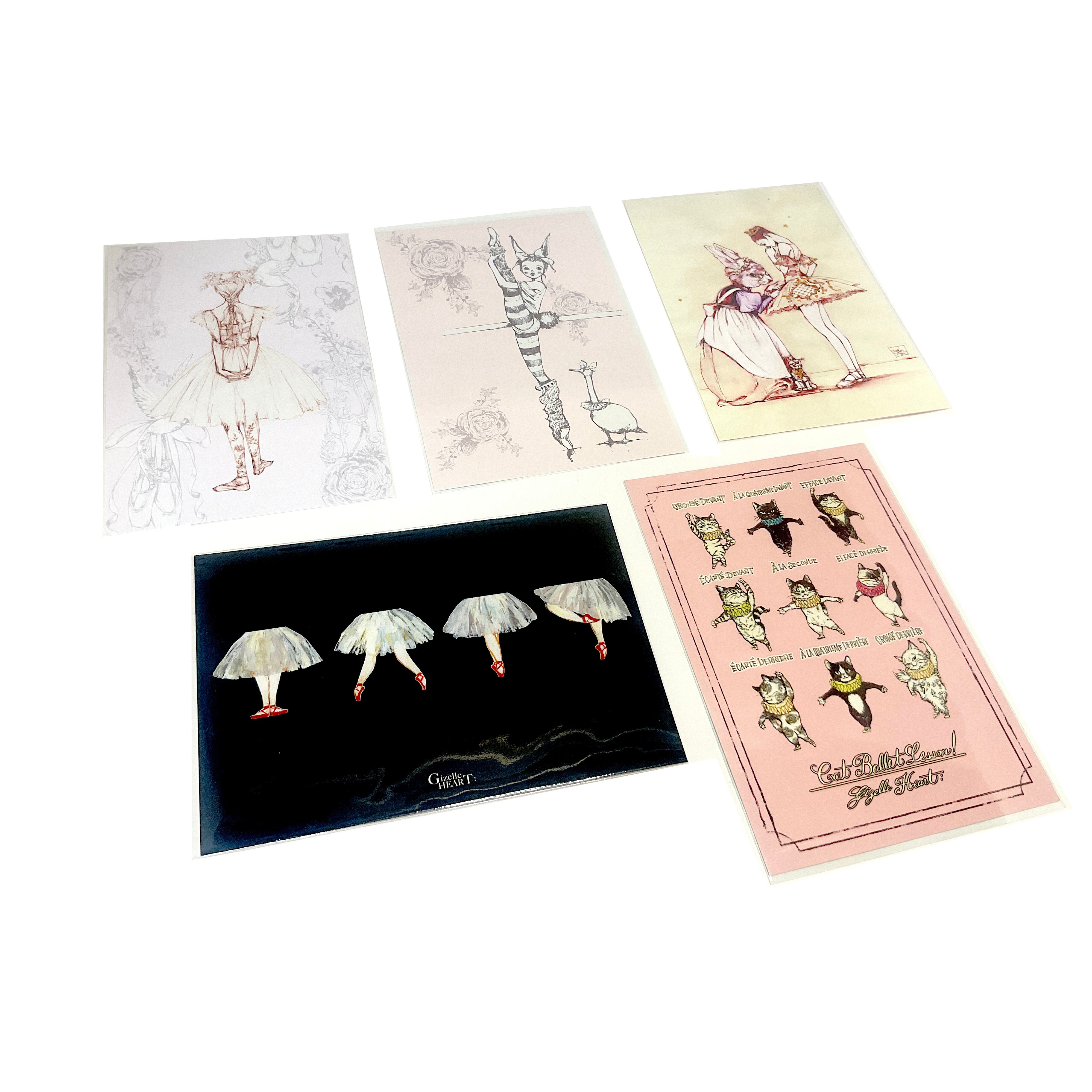 新作『cat ballet lesson!』を含む人気のバレエイラストポストカード5点セット!